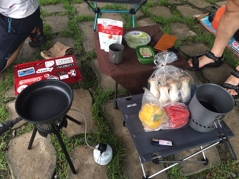 그런데 요즘 비가 많이 온 관계로 취소할까도 고민하다가 비오면 그냥 타프치고 쉬더라도 하긴하자고 해서 진행했습니다...